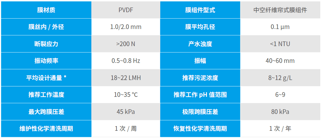 運行能耗低 自運動抗污染,無吹掃風機,單位產水振動能耗≤ 0.03 kW·h/m³;
