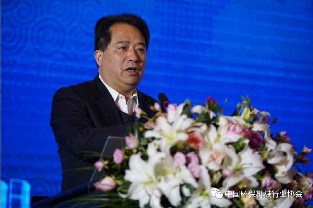 中國環(huán)保機(jī)械行業(yè)協(xié)會當(dāng)值會長文劍平主持大會