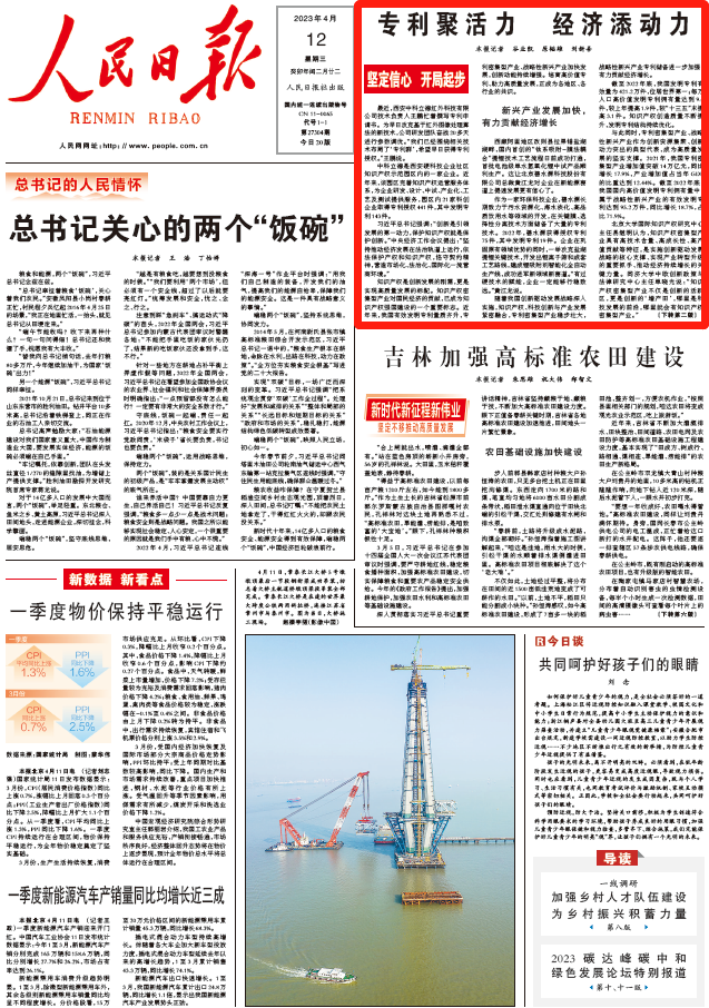 4月12日的《人民日報》頭版刊發了標題為《專利聚活力 經濟添動力(堅定信心 開局起步)》的文章。該文章引用了碧水源在鞏固原有領域優勢的同時,一舉攻克鹽湖提鋰關鍵技術,成功進軍新領域新賽道的案例。碧水源副董事長、總裁黃江龍在接受采訪時表示:“有過硬技術的賦能,企業一定能夠行穩致遠。”